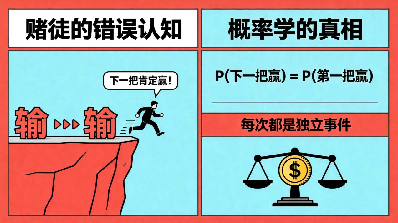 即使你已经连输 10 把,第 11 把的胜率依然和第一把完全相同。
